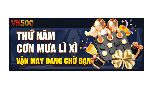 VN500 tổ chức các chương trình khuyến mãi đặc biệt vào những ngày cố định trong tháng như ngày 5, 15, 25 nhằm tri ân thành viên hiện tại và chào đón người chơi mới. Các ưu đãi thường bao gồm thưởng nạp, cược miễn phí và nhiều phần quà giá trị khác.